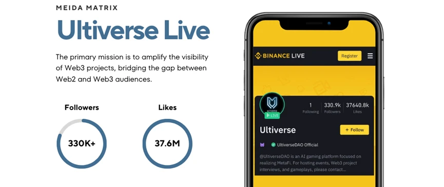 Ultiverse Live是专为Web3项目打造的综合媒体平台,致力于扩大项目的可见性和传播范围。它有效弥合了Web2和Web3用户之间的认知鸿沟,作为集中化的信息中心,为用户提供快速获取项目详情和更新的通道。