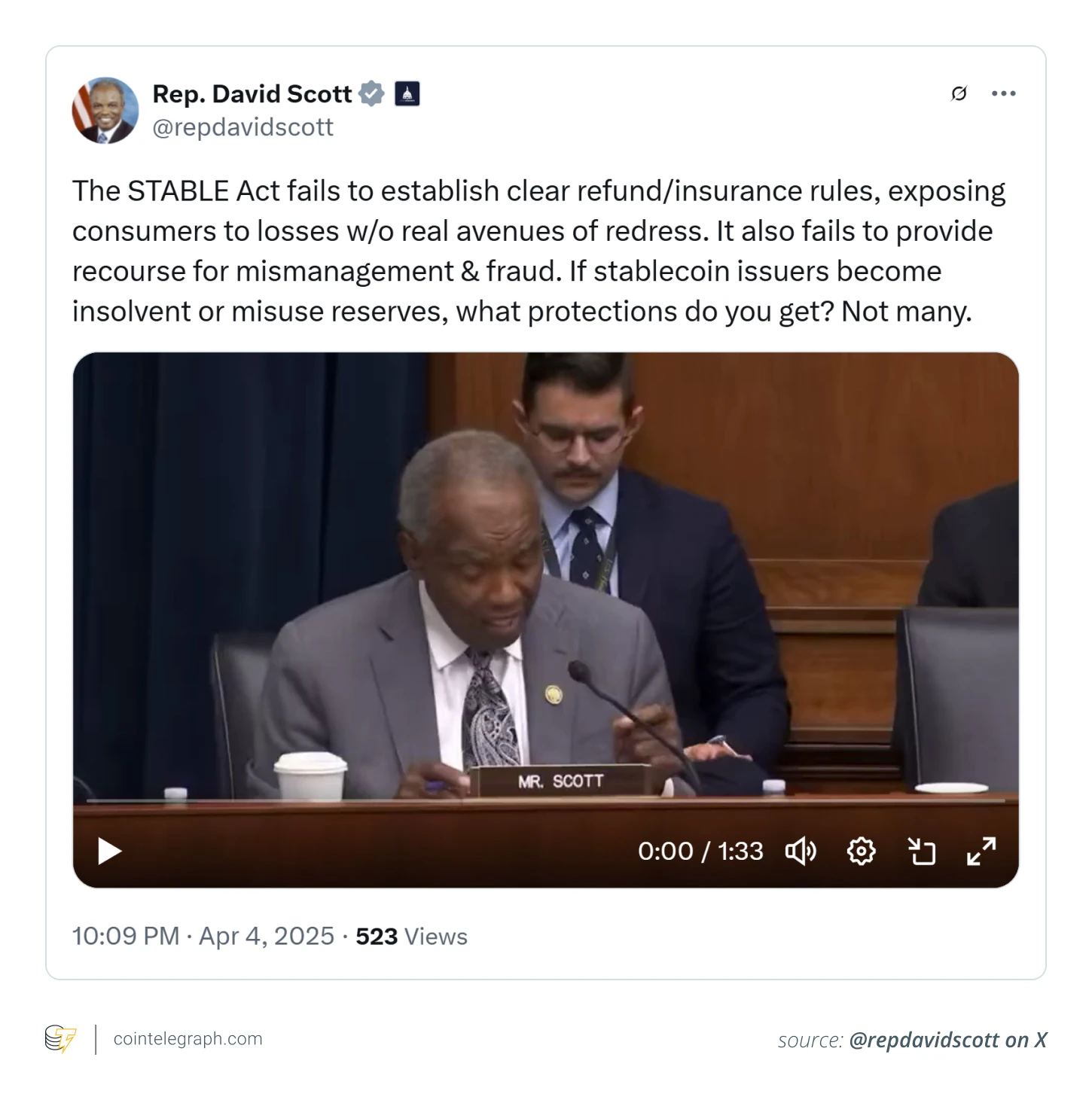 STABLE Act的批判声音首先聚焦于消费者保护机制的漏洞。批评者指出,法案未明确要求稳定币发行机构获得联邦存款保险公司(FDIC)的强制性保险,且在发行方面临破产、欺诈或稳定币脱钩等风险时,用户缺乏明确的资金追索机制,这使得投资者权益保障存在显著缺口。