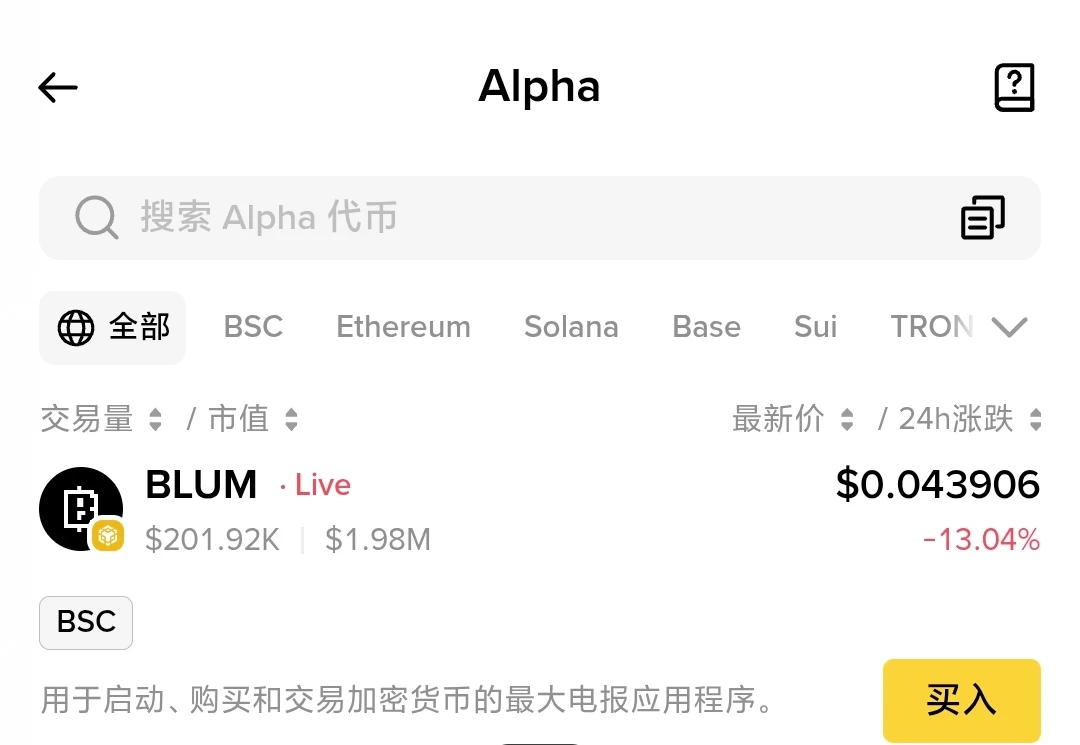BLUM代币正式登陆Binance alpha 空投门槛设定230积分