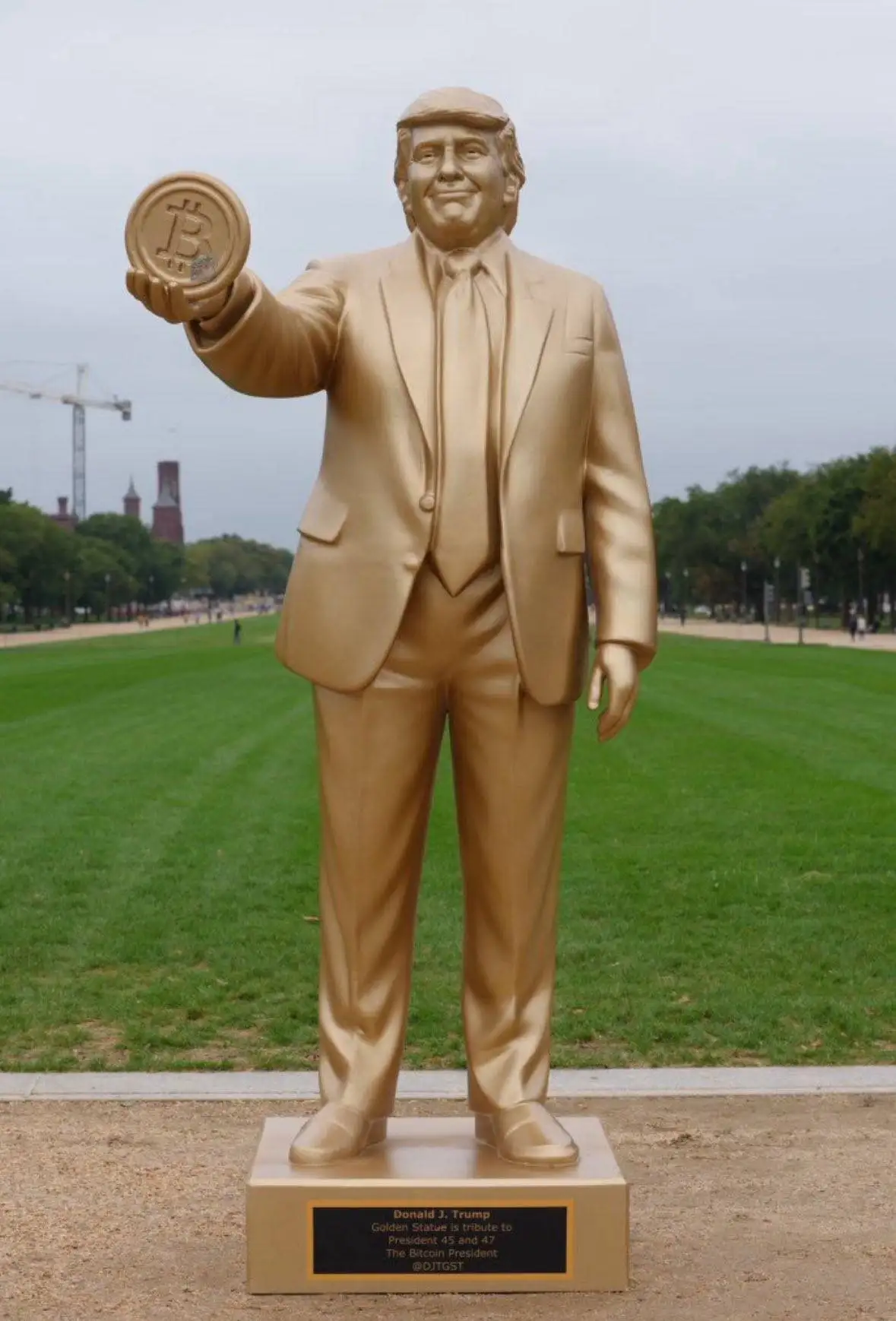 美联储降息日特朗普Bitcoin雕像现身国会大厦外