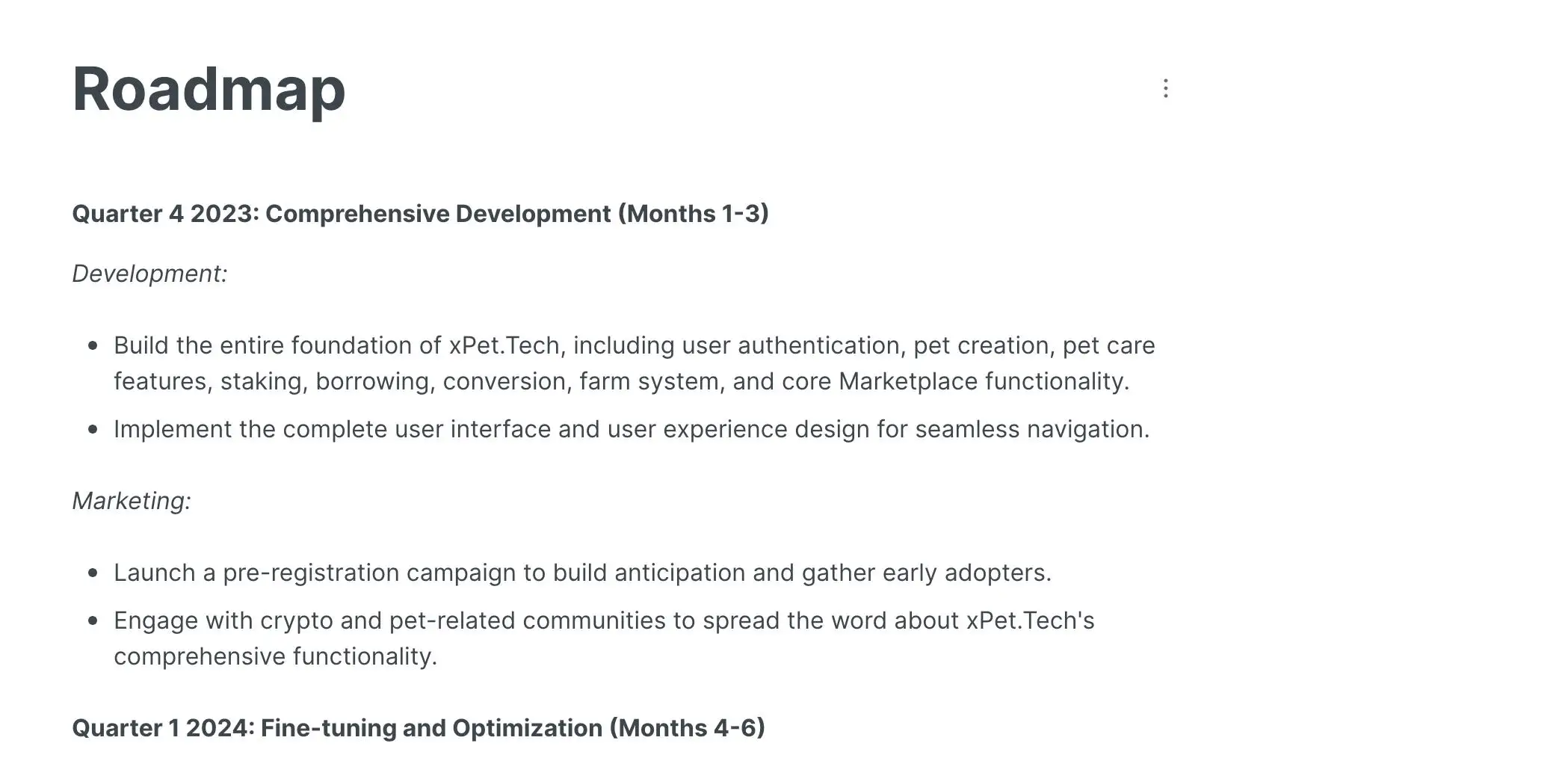此外,项目方正在积极寻求战略合作机会,希望通过与其他平台或项目的联动来扩大xPet.Tech的生态影响力。这种务实的发展策略既考虑了现有功能的完善,也为未来的生态扩展预留了空间。