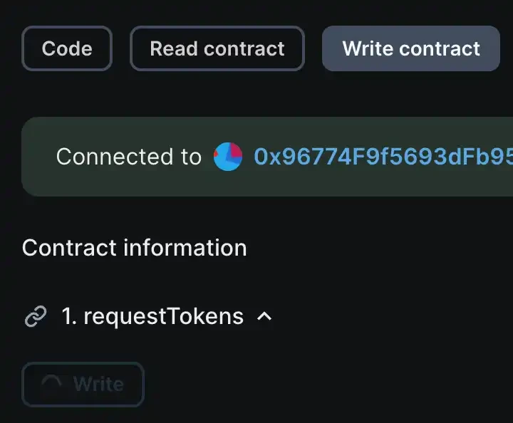 测试网USDC可以通过官方水龙头领取。连接Plume测试网钱包后,点击"requestTokens"下方的"Write"按钮即可获得10万个测试USDC。