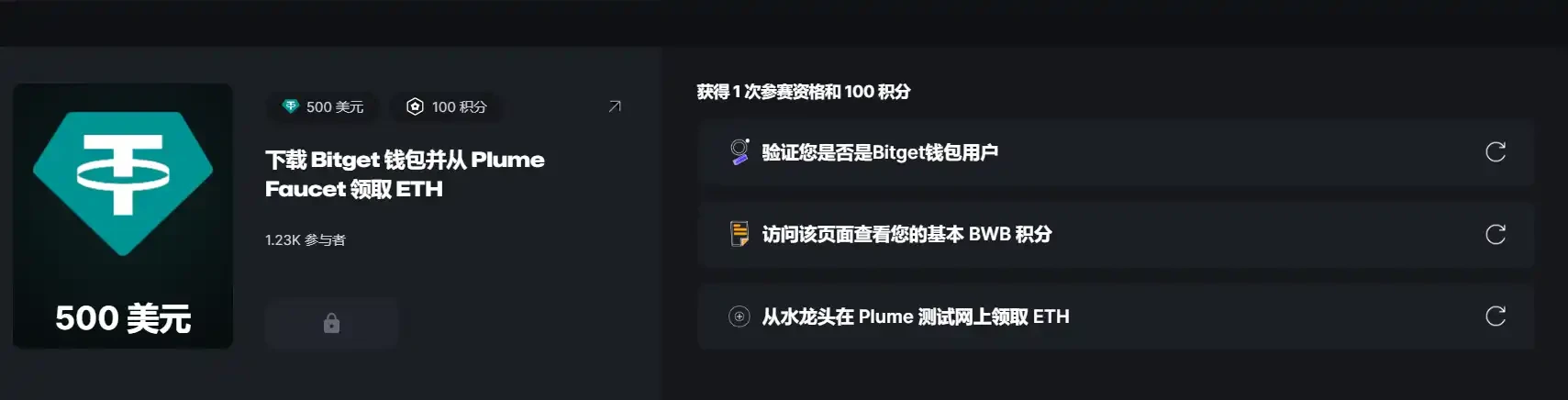 目前Plume Network尚未发行代币,但用户可以通过参与Empower BWB积分计划获取早期奖励机会。该网络作为Layer2解决方案已部署在以太坊Sepolia测试网上,用户可以通过完成测试代币领取、跨链桥接等任务来积累Plume积分并参与抽奖活动。