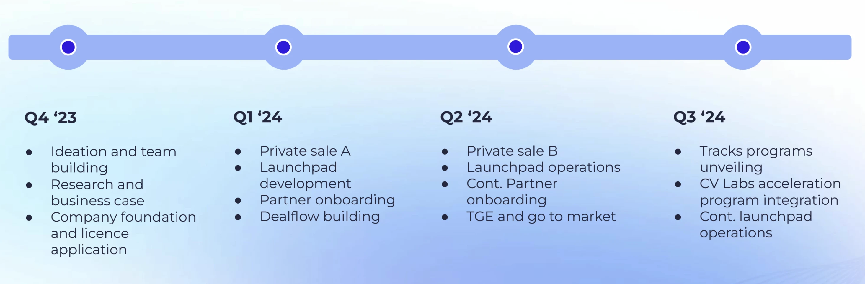 从2023年第四季度开始,项目团队完成了概念构思、商业案例研究和公司基金会设立等基础工作。进入2024年后,开发进程明显加快:第一季度重点推进了私募A轮销售和Launchpad核心功能开发;第二季度将完成私募B轮销售并实现代币生成事件(TGE)上市;第三季度计划公布轨道项目并整合CV Labs加速计划。这一系列明确的里程碑安排,展示了团队对项目发展路径的清晰规划与执行能力。