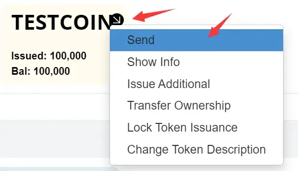 资产创建完成后,通过简单的点击操作即可实现转账、查看信息、增发或锁定资产等功能。