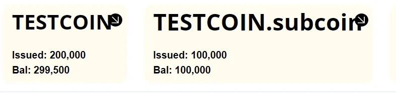 测试网支持创建三类资产:字母命名的资产、已有资产的子资产以及免费的数字名称资产。创建字母命名资产时,只需输入代币名称、说明信息(可随时修改)和发行数量(默认可增发),点击创建即可完成。