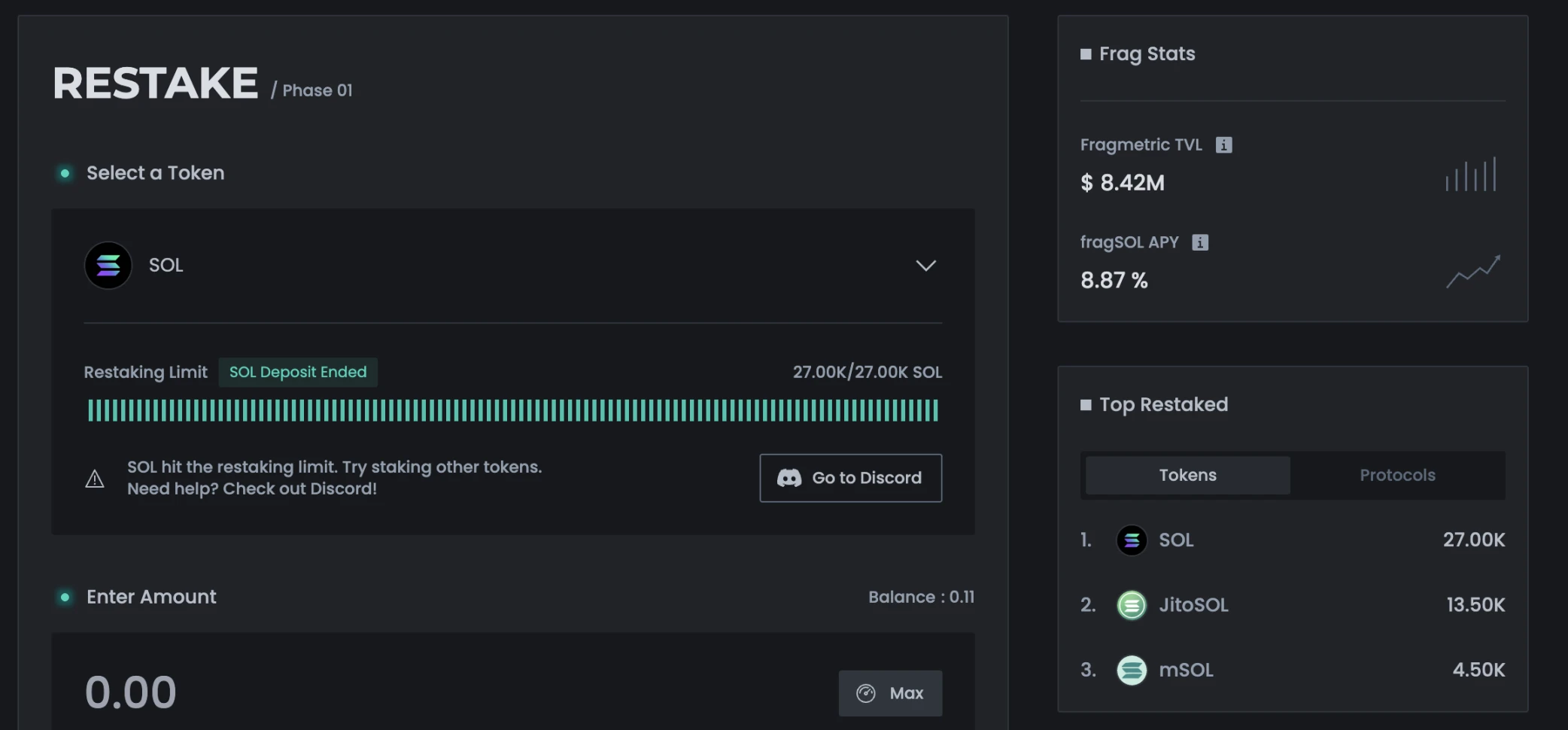 值得注意的是,fragSOL在Jito Vault中的49000SOL额度在开放瞬间就被抢购一空。这是因为Fragmetric直接将Phase1阶段预存的SOL注入了该资金池。这个上线仅6天的新协议TVL已突破840万美元,展现出强劲的市场吸引力。