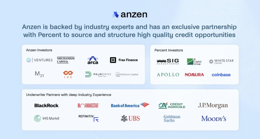 Anzen Finance完成了4000万美元种子轮融资,由Mechanism Capital领投,并获得了Circle Ventures、Frax、Arca等知名投资机构的支持。这家来自台湾的团队拥有十多年信贷投资经验,自2018年起就专注于研究将信贷资产上链的解决方案。其合作伙伴Percent在过去七年中实现了16亿美元的交易规模,年化收益率达16%,违约率仅为2%。