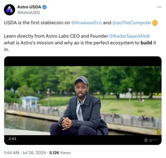在探索去中心化稳定币的各种方案后,Astro USDA团队正在将经过市场验证的超额抵押机制与AO区块链的独特架构相结合。该项目由Astro Labs创始人Kadar Sayed Abdi领导,推出了Arweave生态和AO平台上的首个稳定币USDA。