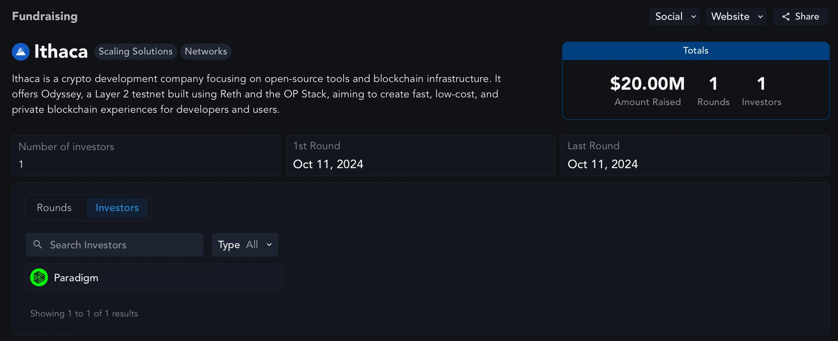 该项目在2024年10月11日完成了2000万美元的融资,由知名投资机构Paradigm独家投资。