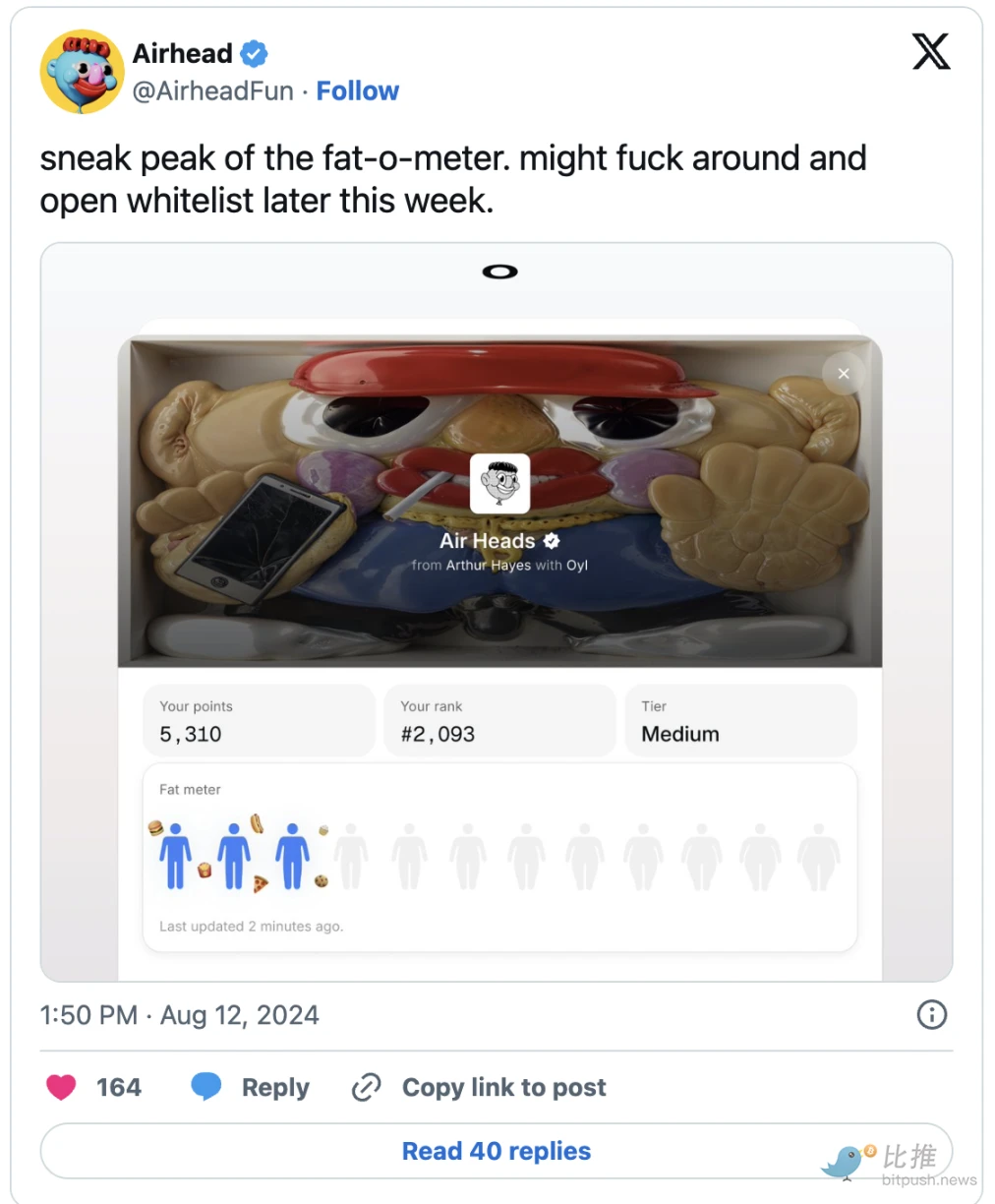 Airhead最显著的特点是角色的体型会随着持有者比特币钱包价值的变化而动态调整。项目创意总监Cole Jorissen表示,这一设计是对"身体自爱运动"的幽默诠释,将财富可视化地表现为角色特征——体型越大代表越富有。