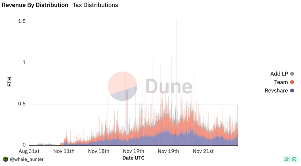 与friend.tech类似,Fren Pet通过设计用户对未来收益的预期,促使用户进行高频链上交互。但Fren Pet更进一步——它不仅有代币交易,还设计了喂食、宠物对战等游戏内交互场景。这些高频操作意味着更多Gas消耗,为Base创造了可观收入。数据显示,friend.tech巅峰时期曾贡献Base近半数的单日Gas支出,而Fren Pet这类具备更复杂交互场景的应用,其Gas贡献潜力可能更大。