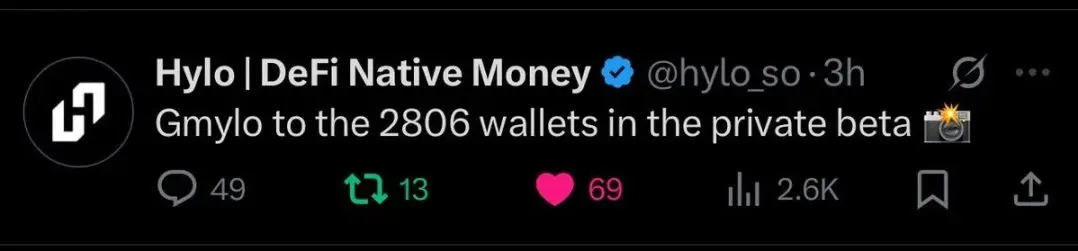 目前Hylo仍处于封闭测试阶段,参与测试的钱包地址仅有2806个。这意味着现在参与不仅能获得早期优势,还能在市场热度上升、大量用户涌入之前抢占先机。