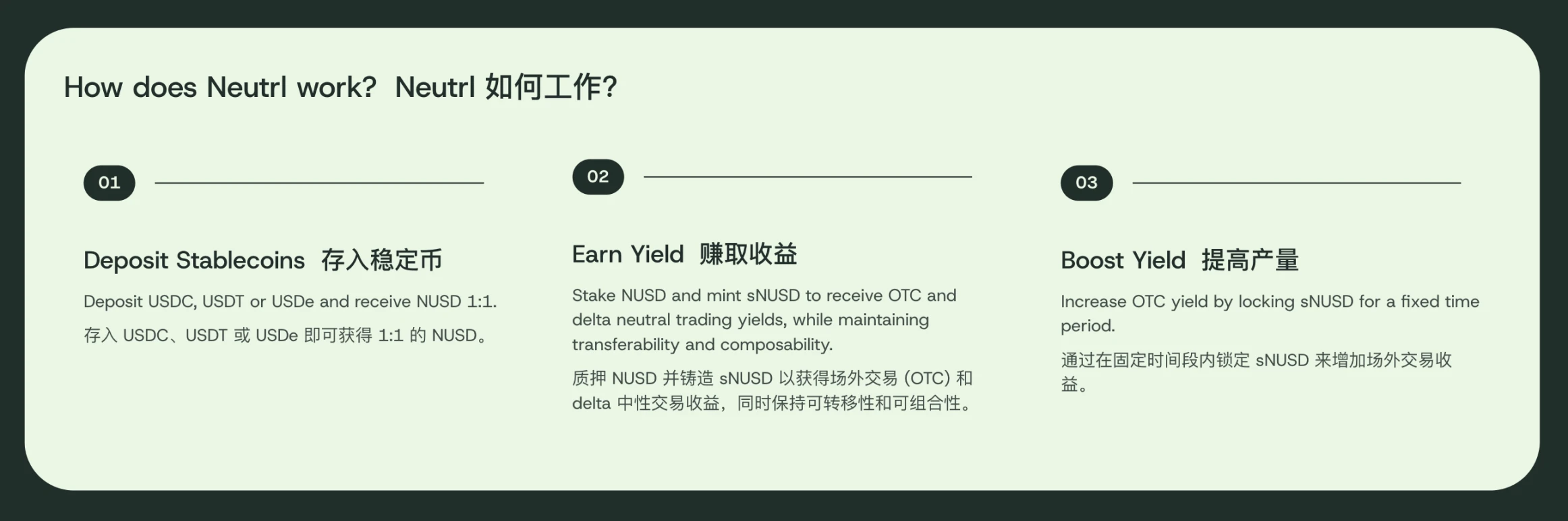 Neutrl的产品架构与行业龙头Ethena类似,提供与美元1:1锚定的合成稳定币NUSD和生息资产sNUSD,分别对应Ethena的USDe和sUSDe。但两者的收益来源存在本质差异:Ethena依赖加密永续合约市场的资金费率套利,而Neutrl则采用更激进的策略——通过场外交易(OTC)折价购买VC代币进行套利。