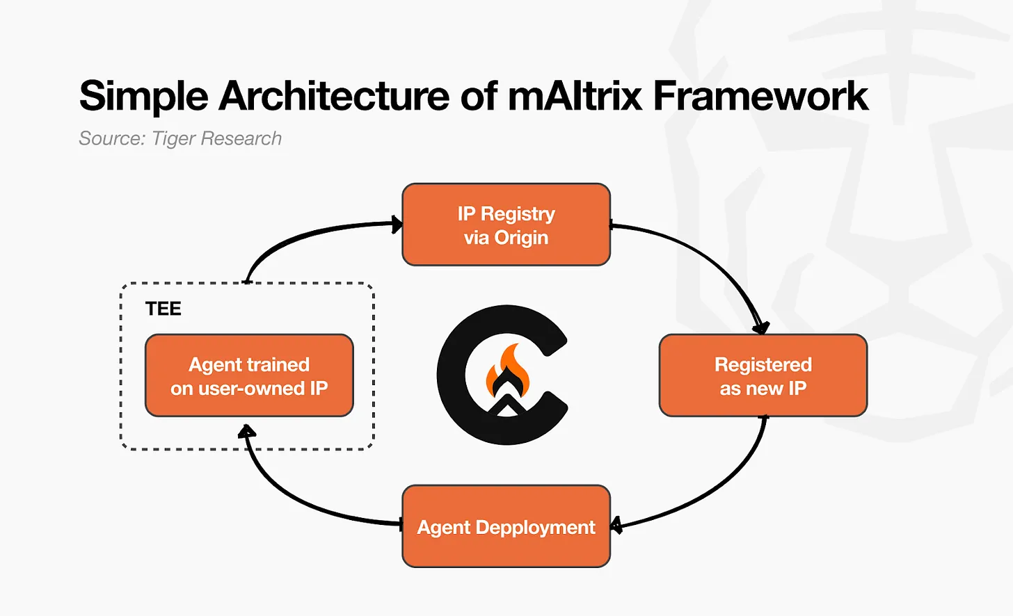 mAItrix是一个专为AI代理开发设计的集成SDK框架,它与Origin框架紧密配合,形成从模型训练到内容生成的完整工作流。这个框架的关键创新在于只使用经过授权许可的链上知识产权数据进行AI训练,从根本上解决了数据伦理问题。