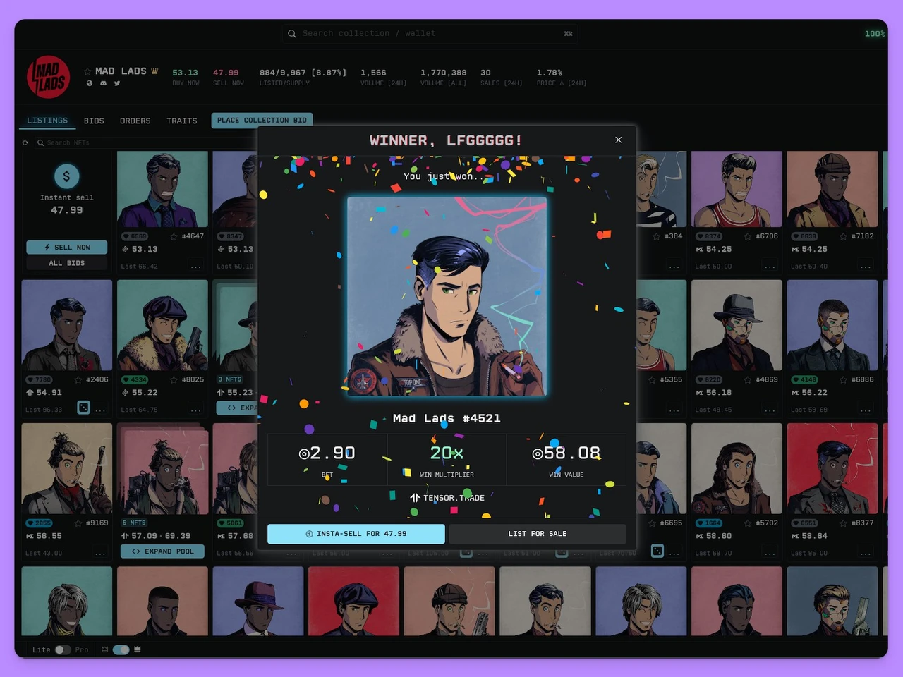 在技术层面,Tensor.trade基于Solana区块链构建,充分利用其每秒超6万笔交易的高吞吐量和低至0.0001美元的交易费用优势,为用户提供快速且经济的交易体验。Solana生态的互操作性还使NFT能够与DeFi等应用互动,拓展了使用场景。