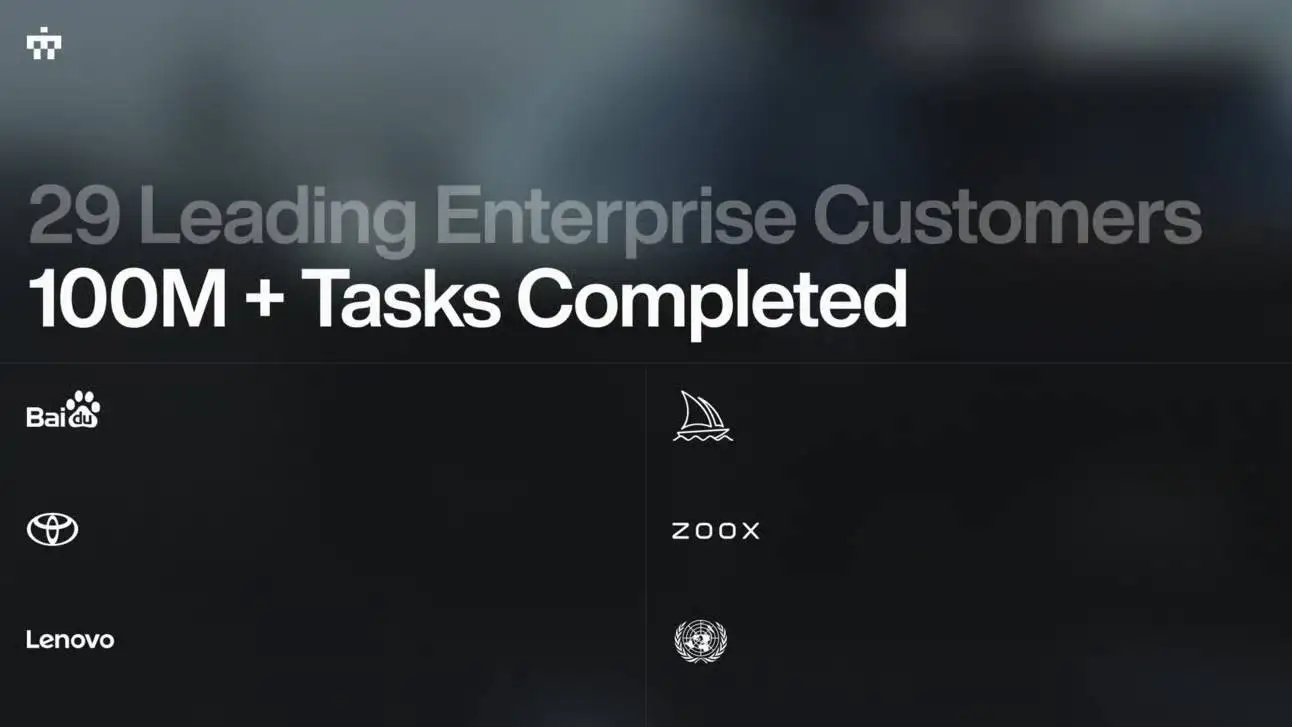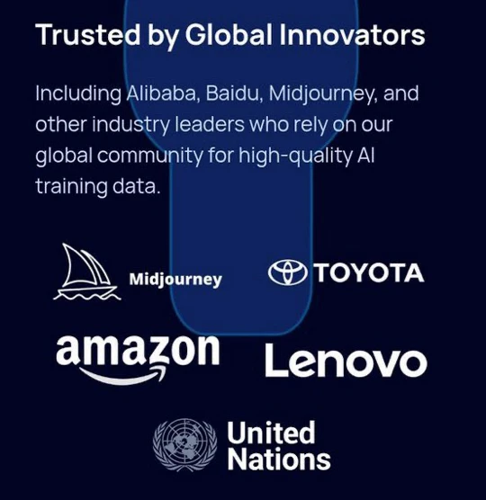 Sapien引起市场关注的原因不仅仅是用户数量的快速增长,更在于其展现的企业客户阵容。Sapien已经服务29家企业客户,包括丰田、阿里巴巴、百度、Midjourney和联合国等知名国际机构,这些客户涵盖了自动驾驶、电商、AI绘图、国际组织等多个领域。