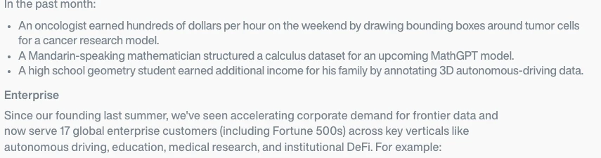 其中特别值得关注的是Sapien与Midjourney的合作。作为AI图像生成领域的头部项目,Midjourney一直以产出高质量AI图片享誉盛名,这也意味着其对图像绘画数据的质量要求极高。只有基于大量高质量素材训练,才能诞生好用的AI绘图功能。Midjourney选择Sapien作为数据供应商,充分验证了Sapien高质量数据采集机制的可行性。