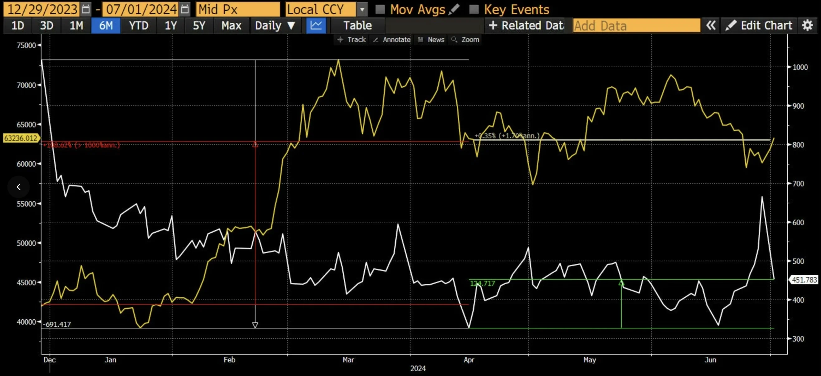 山寨币作为高beta资产,其表现往往与比特币高度联动。当前周期中,BTC和ETH因现货ETF获批获得了结构性支撑,这使得它们即便在市场回调时也展现出较强韧性。相比之下,多数山寨币自4月以来经历了剧烈调整。
